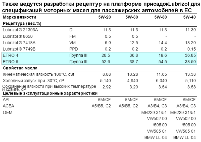 Что ты привел? К чему ты это привел? Есть вот такие варианты с составом базовых масел у 229.51, с гораздо большим содержанием 6сСт базы,чем у А5/С2, но при этом и с гораздо большим количеством загустителя, что, вероятно, и позволило получить 229.51/505.01 и говорит о том, что загуститель там имеет меньший SSI, чем в "безоемном" А5, почему его и потребовалось больше. И что? Как мы это соотнесем с тем, что более требовательный к загустителю 504/507, вдруг, будет иметь меньшее его содержание(меньший SSI), чем более простые рецептуры? Шиза же какая-то вырисовывается, нет?